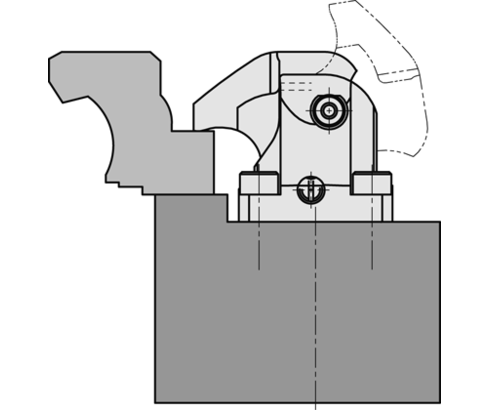 The hydraulic compact clamp is a double-acting pull-type cylinder where a part of the linear stroke is used to swing the clamping lever onto the workpiece.