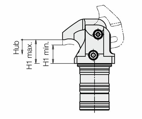only vertically in parallel to the piston axis. Swinging away of the clamping lever is only made outside the usable clamping range.