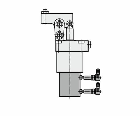 The hinge clamp is a double-acting hydraulic cylinder with integrated clamping lever. When