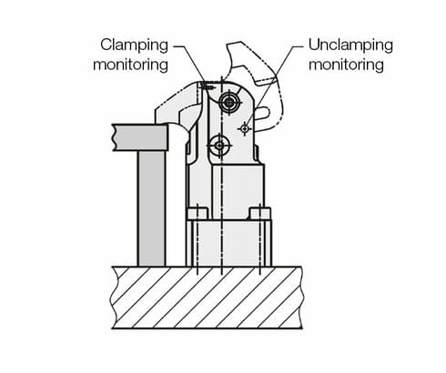 The compact clamps can optionally be supplied with bore holes for the pneumatic monitoring of the clamping lever.