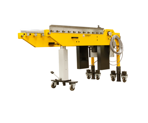 The lifting pistons are below each roller. Each roller is lifted individually. The base body remains in a fixed position. The die positioned on the rollers is not in contact with the tabletop and can be easily positioned.