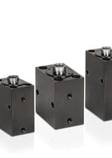 Thanks to numerous variants and small dimensions, the block cylinder S can also be used for a wide range of applications. For example, core pullers and sliders can be operated in mould making. It can also be used in fully automatic production systems with very short cycle times thanks to its high load capacity. Inductive stroke end controls are provided for optional position monitoring.
