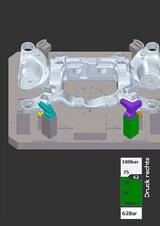 In the innovation, various clamping elements take over the monitoring of the component clamped on the fixture. In the pilot project, for example, only two modified hydraulic standard swivel clamps equipped with sensors, one pressure sensor and two contact sensors are required for a cast aluminium rear axle frame. Through the correct arrangement of the elements and the transverse interrogation of the sensors, two electrified clamping points are sufficient to be able to make reliable statements: