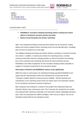 Pilot project of Wenzler and ROEMHELD reduces scrap significantly