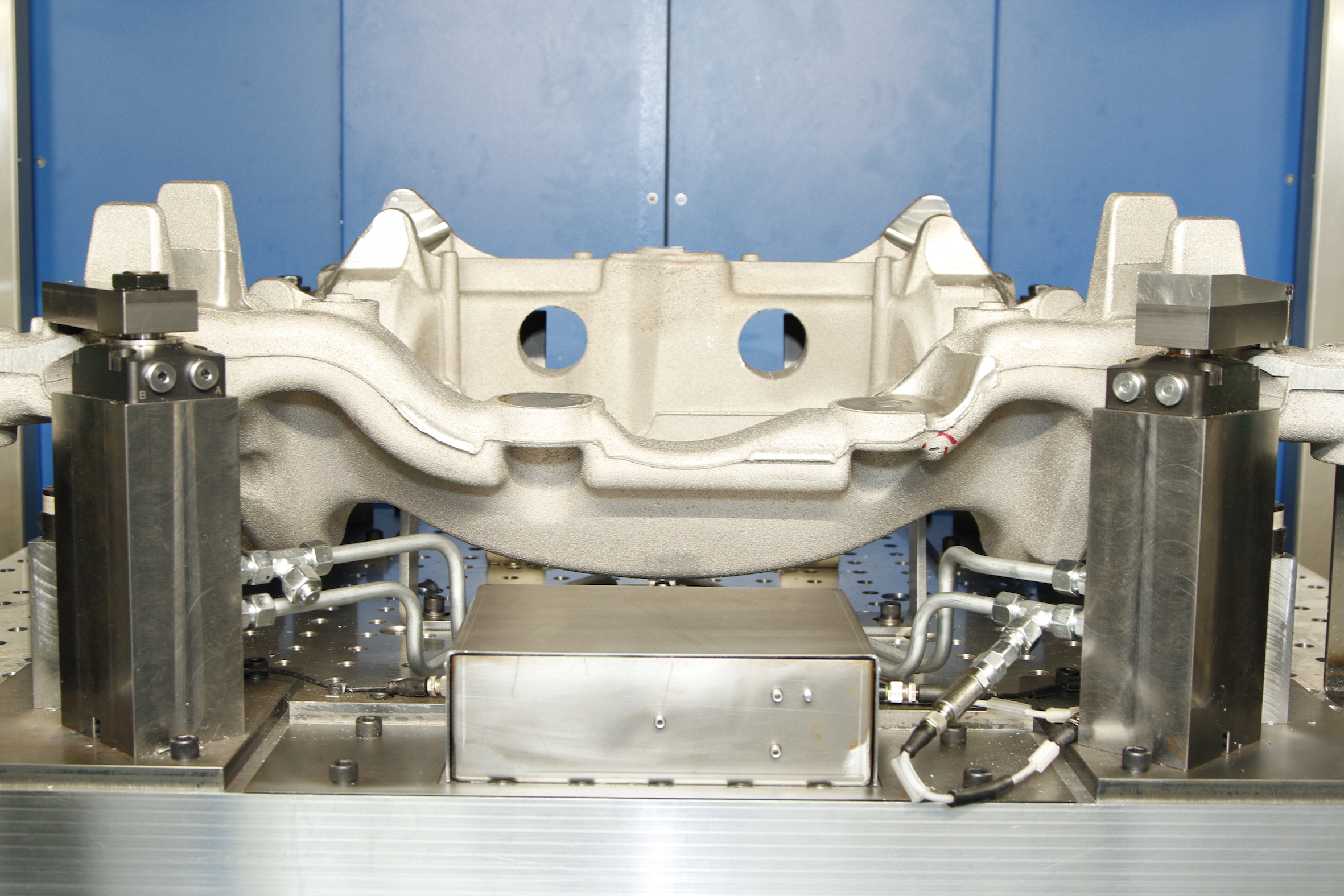 Both companies were looking for a solution to the problem that undetected faulty cast aluminium blanks cause unnecessary costs. This is because the components are usually only inspected after machining. Especially in the automotive industry, lightweight aluminium parts, which are particularly thin-walled and filigree, often end up as rejects. This can be drastically reduced with the new clamping concept.