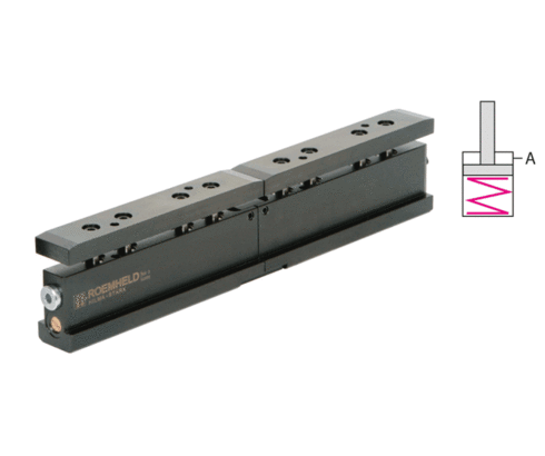 Double-T-clamping bar, single acting, with spring return, without carrying rollers