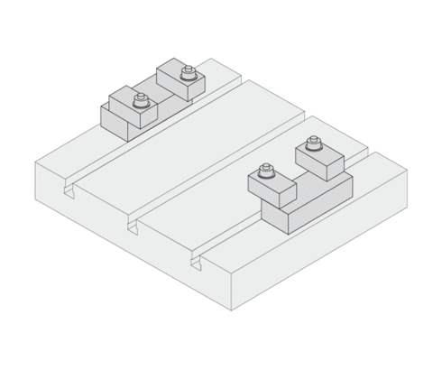 Use of mechanical sliding clamps 6.2210 on a machine table.