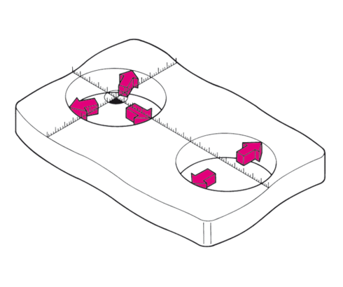 Workpieces with cast or machined bores, reliefs or break-outs, can be easily loaded to the fixture with the concentric positioning and clamping elements and concentrically clamped or positioned for machining. Overtolerance conditions can be avoided and clamping tasks can be completely solved by an ingenious combination of 2 and 3-point elements.
