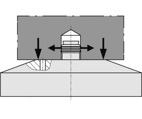 The 4 segments of the clamping bushing are radially expanded with spring force by a conic clamping bolt. Thus the expansion force is always the same and independent of the hydraulic clamping pressure. Both unclamping of the clamping bushing and pull-down clamping of the workpiece are controlled hydraulically.