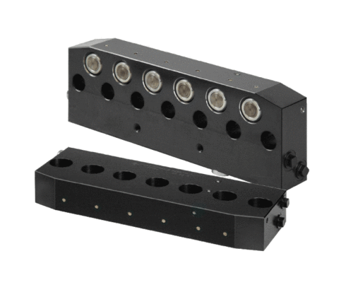 The clamping bar is directly screwed on the press bed or ram using a spacer bar. Clamping is carried out on the die clamping edge by applying hydraulic pressure to the port of the 2, 3 or 6 pistons which are arranged side by side with a pressure medium.