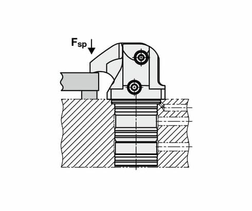 deviated by 180° and, depending on the lever length, the force is available as clamping force.
