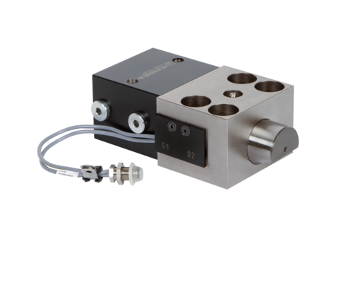 Block cylinders, single or double-acting, are made of high alloy steel, bronze alloy, and special aluminum alloys. They can be installed in any position and have a max stroke speed of 0.25 m/s. ROEMHELD block cylinders do not leak oil when static. Stroke leakage is at a minimum due to the double piston sealing.