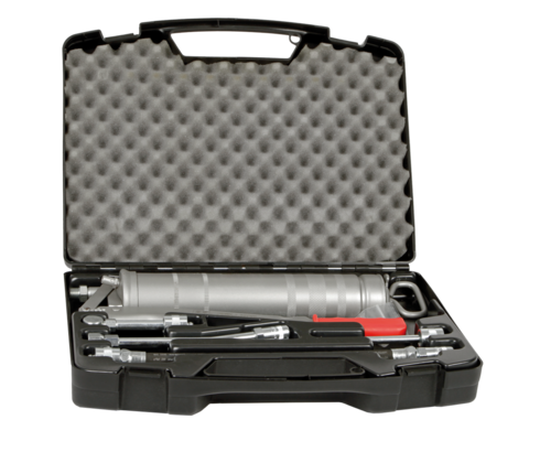 Grease gun case incl. grease gun for 400 g cartridges and connection nipples with oil-resistant insert