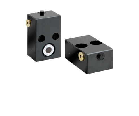 Manual positioning of the sliding clamp in the T-slots of the press ram or bed. Clamping on the die clamping edge by the application of hydraulic pressure to the piston and unclamping by spring force. The “classic” sliding clamp consists of a hydraulic clamping block which will be fixed with two screws to a T-slot adapter. The clamping block can also be directly screwed without T-slot adapter and can be ordered separately.