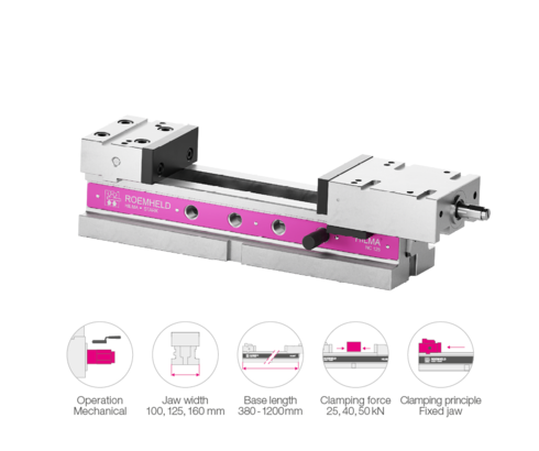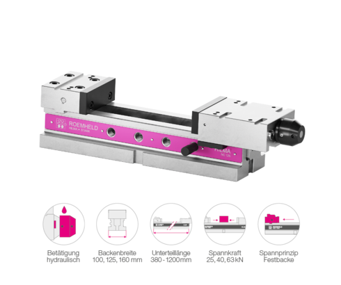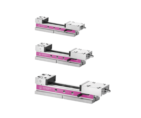 The modular system of the HILMA.NC series is preferably used on vertical machining centres. Depending on the machining strategy and degree of automation, the clamping force can be applied manually by means of a crank handle (HILMA.NC) or hydraulically by means of a power unit (HILMA.NCH).