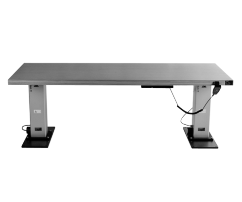 The workbench with electrical height adjustment is used for manual working places. The users can individually adjust their optimum ergonomic working height. They are used in production plants of the industry.